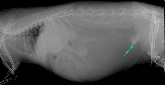 Radiographie montrant une sablose vésicale chez une lapine (1)