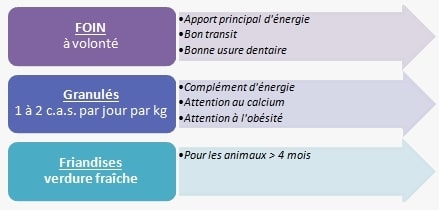 Le foin peut constituer l’unique élément de la ration alimentaire. Il doit présenter un aspect vert, une odeur agréable et ne pas être trop sec (foin de Crau, foin Oxbow…).
